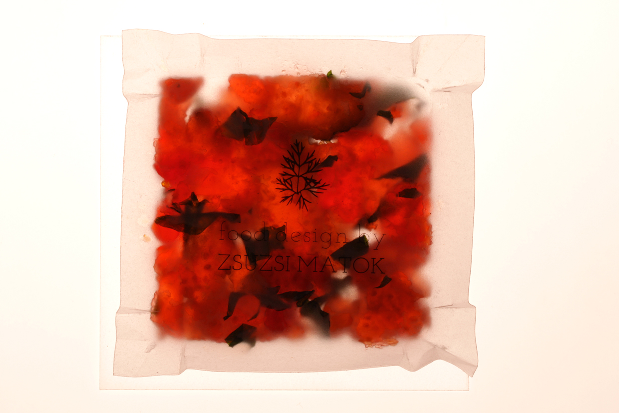 Strawberry Bites // Food Design by Zsuzsi Matók / Materials: Strawberry, Basil, Tracing Paper / Client: Zsuzsi Matók / Product Design: Zsuzsi Matók, Veronika Szalai / Photo: Péter Magyar / Date: 2014